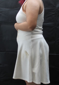 El vestuario elegido, para mi Cuerpo Efecto: tenis blancos, cabello recogido en media cola, para controlar un poco sus movimientos y un enterizo en short para poderme agachar, levantar o realizar la acción que fuera necesaria para cumplir el objetivo, realizar los recorrido con mi piel expuesta.
